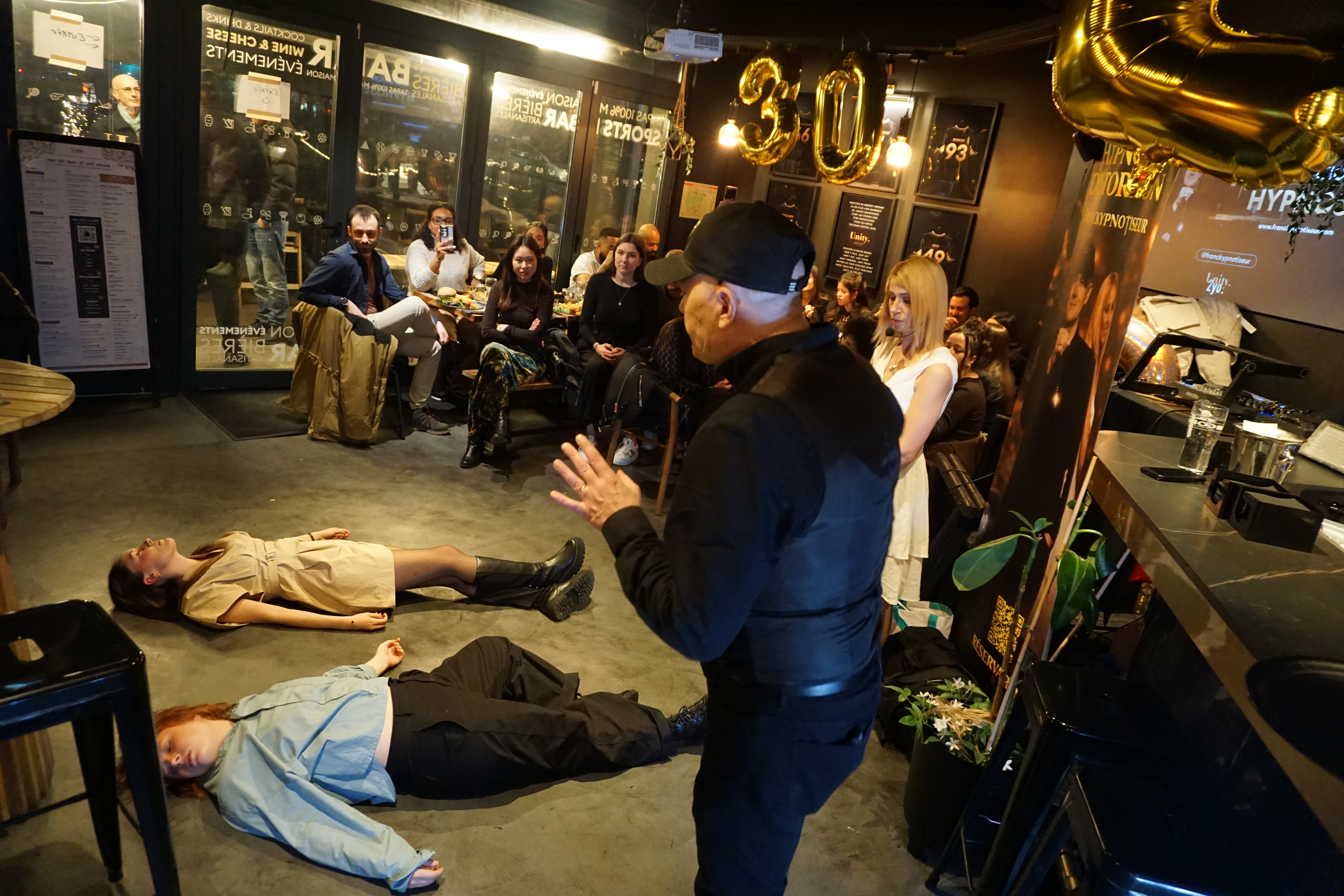 Pendant ce temps, et en attendant l'arrivée des plats, le magicien Magic Dragoon a commencé à faire ses tours, et FranckYpnotiseur s'est installé dans l'esprit des invités. La scène était bluffante et a donné quelques moments irréels au milieu du bar.
